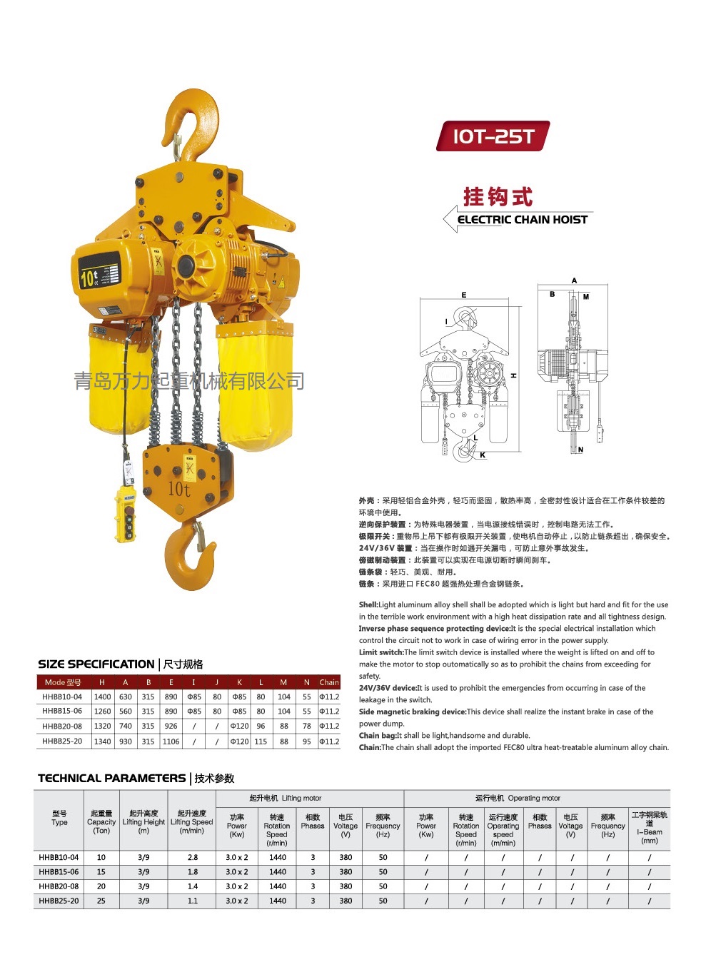 其優(yōu)點有外型新穎、美觀,結構精致輕巧;電機的綜合性能良好,保障使用的安全性和可靠性,降低危險發(fā)生幾率;整體構造簡單,便于安裝、拆卸、維護和檢查;凈空高度佳,不受空間狹小的限制并有效節(jié)省了空間;三合一傳動技術提供強大的傳動力,合金鋼制造的起升減速能夠實現(xiàn)三級減速,運行平穩(wěn)、使用壽命持久,避免了CD葫蘆中間軸長距離傳動的許多缺點。