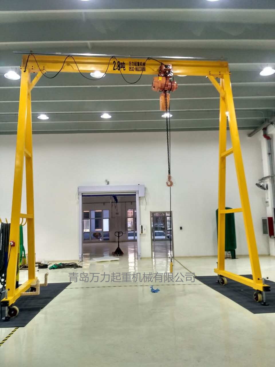 適用于制造模具、汽修工廠、礦山、工地及需要起重場合。該移動龍門架的優(yōu)點是可全方位移動性,可快速拆卸安裝,占地面積小,用微型汽車就可轉(zhuǎn)移到另一個場地安裝使用。寬度、高度可分級調(diào)節(jié),鋼架構(gòu)設(shè)計合理,能承受從100~5000kg重量。尤其適用于車間設(shè)備的安裝、搬運、調(diào)節(jié)、車上貨品的裝卸搬運,汽車維修生產(chǎn)車間起吊柴油發(fā)動機重件等。簡單龍門架下安裝有萬向載重輪,可在整平路面上多方位中移動吊裝物件;根據(jù)電動式或人力資源大葫蘆,建立起重吊裝專業(yè)化。可降低人力資源,降低成本經(jīng)營成本,效率提高。龍門架需依據(jù)顧客的當(dāng)場狀況訂制不一樣的商品。中移動小龍門架吊裝大葫蘆可采用手動葫蘆或電葫蘆,商品應(yīng)用性強。